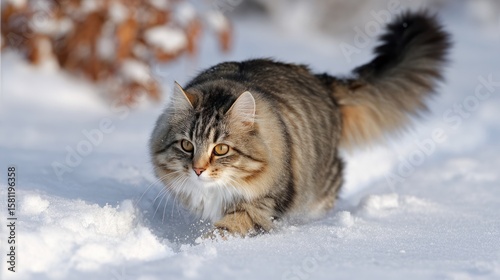 © Yusuf, Fototapeta premium A tabby cat in a snowy landscape