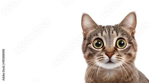 © Felippe Lopes, Obraz premium A tabby cat with big green eyes stares intently at the camera.