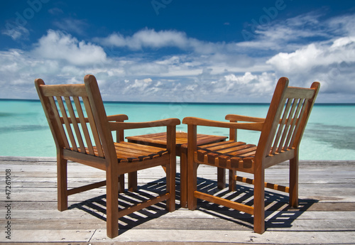 © mstaniewski, Fototapeta premium A table for two at a beach bar