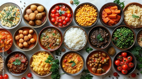 © Nathamanee, Fototapeta premium A table full of different types of food in bowls
