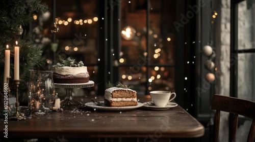 Naklejka premium A table with a cake and a cup of coffee