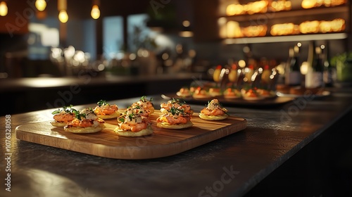 © Devian Art, Fototapeta premium A table with a white plate of food and a wine glass