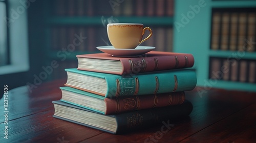 © Alice, Naklejka premium A table with books and coffee stacked on top