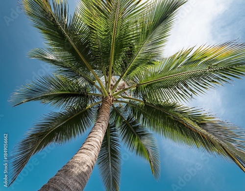 Fototapeta premium a tall and lush palm tree with vibrant green fronds perfect for tropical and...