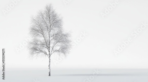 © Johannes, Fototapeta premium A tall birch tree stands alone on a white background