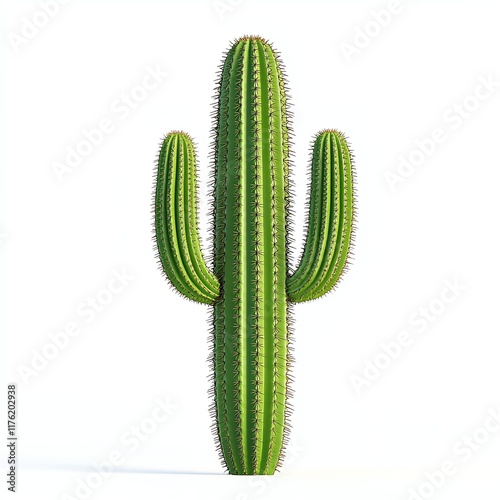 © padungsak, Naklejka premium A tall green cactus with multiple arms, showcasing its unique shape against a light background.
