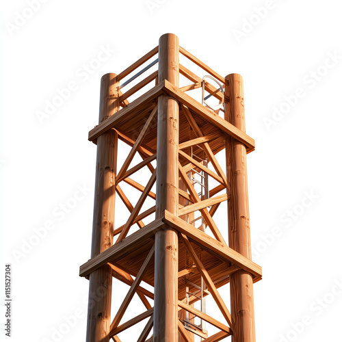 Obraz premium A tall wooden structure with a unique design against a clear background,...