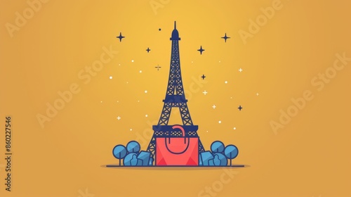 Fototapeta premium A tall yellow Eiffel tower is shown in the center of a yellow circle