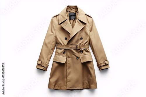 Naklejka premium A Tan Colored Double Breasted Trench Coat On White Background