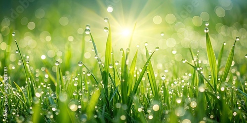 Fototapeta premium A Tapestry of Dewdrop Reflections in a Lush Meadow, Illuminated by the Gentle...