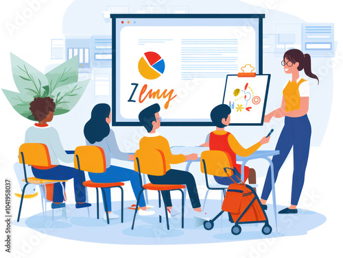 Fototapeta premium A teacher leading a lesson in an inclusive classroom, using adaptive tools to ensure all students can participate equally