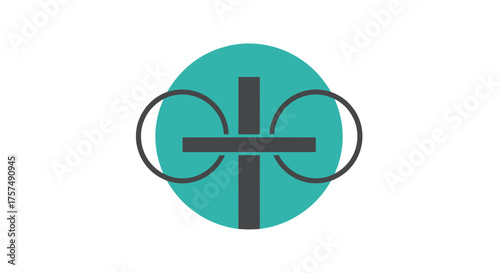 © Engg, Obraz premium A teal circle with a cross and connected circles. Black lines over teal and white background