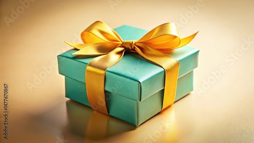 Fototapeta premium A teal gift box adorned with a luxurious golden ribbon, reflecting elegant...