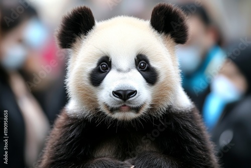 Fototapeta premium A team of veterinarians examining a giant panda in a conservation center,...