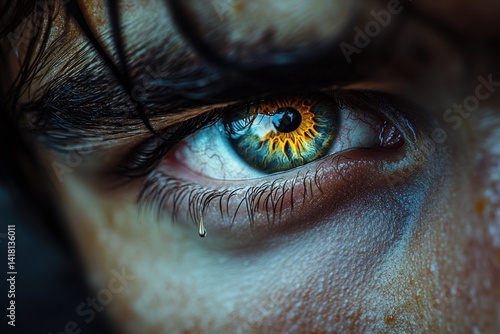 © Dennis, Fototapeta premium A Tear Falling Gently from a Person’s Eye, Reflecting Deep Emotion