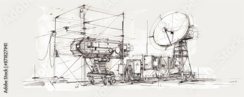 Obraz premium A technical sketch of a ground radar system, showcasing its antenna array,...
