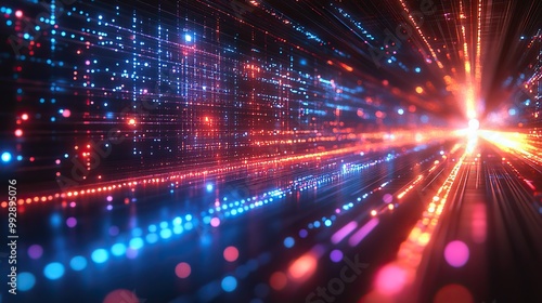 Naklejka premium A technology background with dynamic lines and lights captures the precisionist style of digital design.