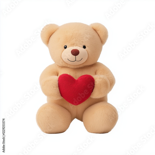 © N. W., Obraz premium A teddy bear holding a heart, Valentine’s Day plush toy, vector illustration, cute and adorable, isolated on white background