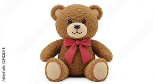 © LarisaM, Obraz premium A teddy bear with a red bow around its neck. The bear is sitting on a black background