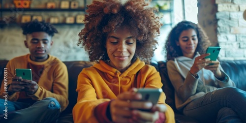 © kwanchaift, Obraz premium A teenager texting on a smartphone with friends, staying connected through social media and messaging
