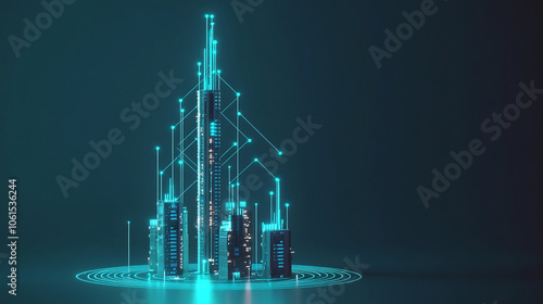 Obraz premium A telecommunications mast with dotted lines connecting to smaller towers,...