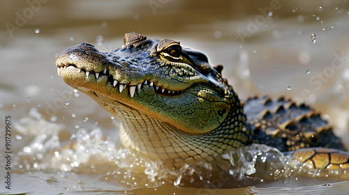 Obraz premium A terrifying crocodile emerging from a murky swamp .
