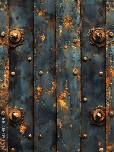 Fototapeta premium A texture of corrugated metal sheets with rust spots and dents.