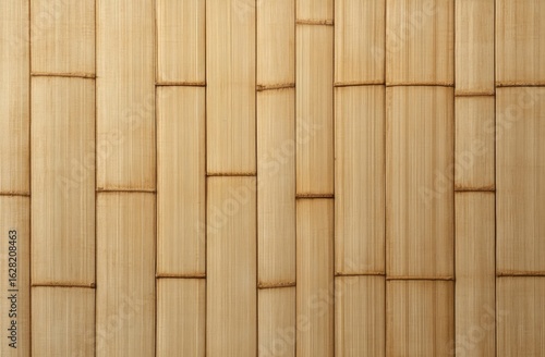 © Nice Seven, Fototapeta premium A textured bamboo wall with vertical panels, showcasing natural tones and a seamless design, ideal for decor and aesthetic applications.