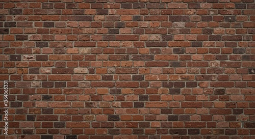 Fototapeta premium A textured brick wall displays a pattern of various red hues
