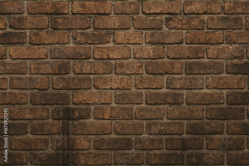 © Dzunstock, Fototapeta premium A textured, brown brick wall showcasing various shades and patterns, ideal for backgrounds or architectural contexts.