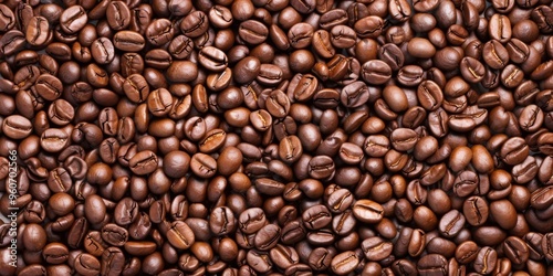 Fototapeta premium A textured close-up of freshly roasted coffee beans, showcasing their rich...