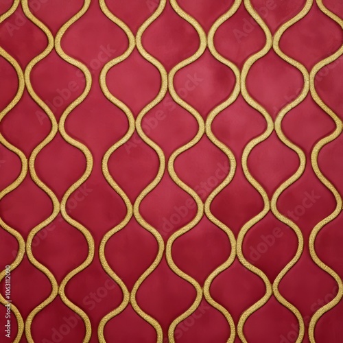 © MetaKibo, Fototapeta premium A textured fabric featuring a red background with wavy gold patterns.