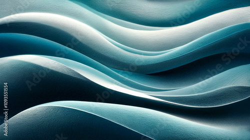 © @TrendStudio, Obraz premium A textured gradient of blue and white tones ripples like waves exuding serene abstract motion.