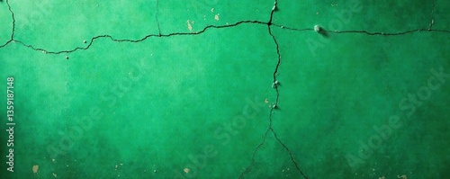 Fototapeta premium A textured green distressed wall background with peeling paint and cracks, surface, pattern