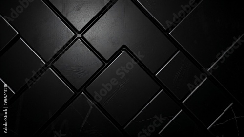 Fototapeta premium A textured material with chic black leather-like background cuts like square and diamond tiles. A textured material with chic black leather-like backgrou シックな黒い革のような背景が四角やひし形のタイルのようにカットが入っているテクスチャー素材