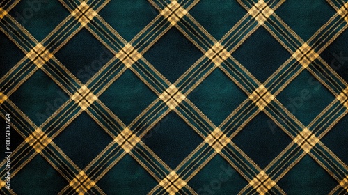 © Nitchalee N., Naklejka premium A textured plaid pattern featuring dark green and golden yellow colors, creating a classic and cozy appearance.