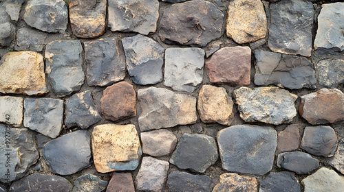 Obraz premium A textured stone wall made of various colored stones in an outdoor setting