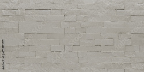 © Höyka Studio, Fototapeta premium A textured stone wall with a pattern of rectangular blocks of varying sizes. Stones are arranged in a staggered, brick-like pattern. Interior design concept. Abstract background, wallpaper