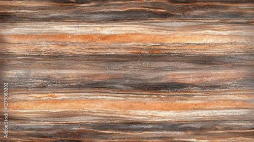 Naklejka premium A textured surface featuring horizontal stripes in rich browns, oranges, and grays, resembling natural stone or wood.
