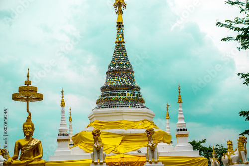 © KanlayaT, Fototapeta premium A Thai temple situated atop the mountain