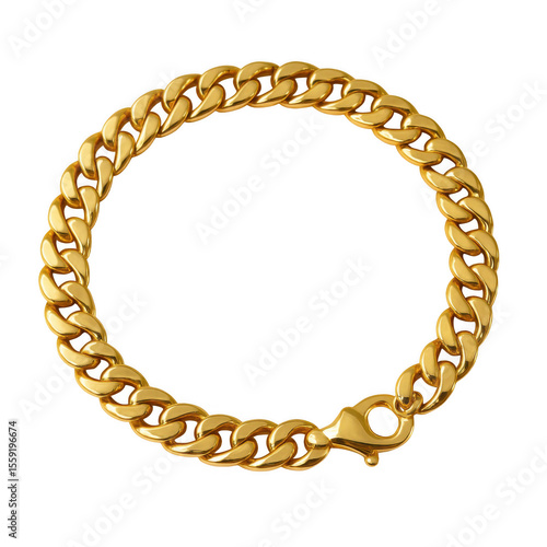 © LABONI, Obraz premium A thick gold cuban link chain bracelet isolated on transparent background