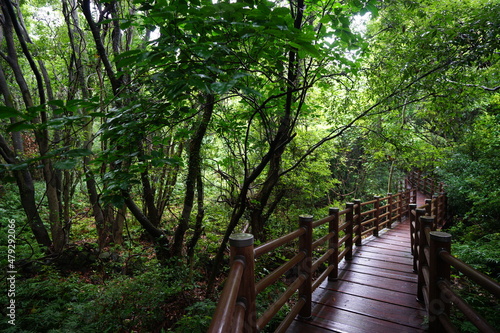 © SooHyun, Obraz premium a thick wild forest with rainy pathway