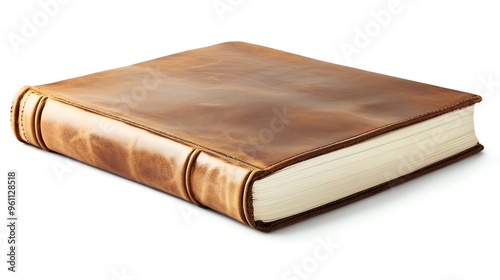 Obraz premium A thick, worn leather-bound journal with blank pages.