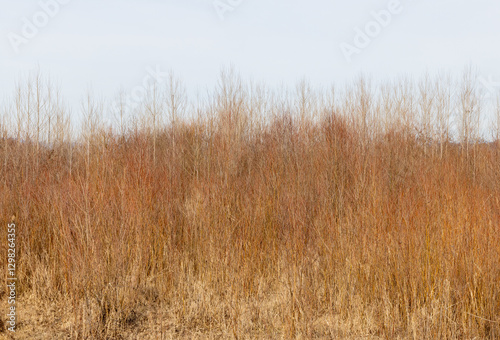 Obraz premium A thicket of young trees in a field
