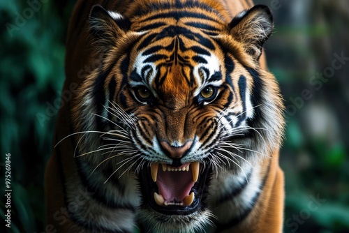 © Dzikrul Husnani, Fototapeta premium A threatening malayan tiger, stock photo, ai