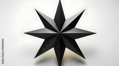 © JSR, Obraz premium A three-dimensional black star with sharp points, set against a light background.