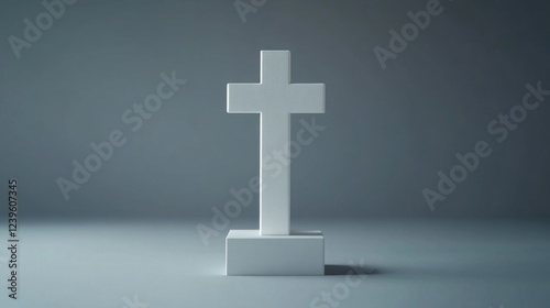 © Alexandr Efimov, Naklejka premium A three-dimensional cubed representation of a Christian cross, in an abstract and minimalistic style. The image evokes the spirituality of faith through its simple yet profound symbolism.