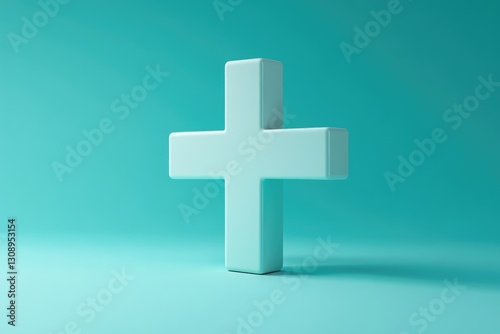 © boler, Fototapeta premium A three dimensional minimalist white cross stands on surface