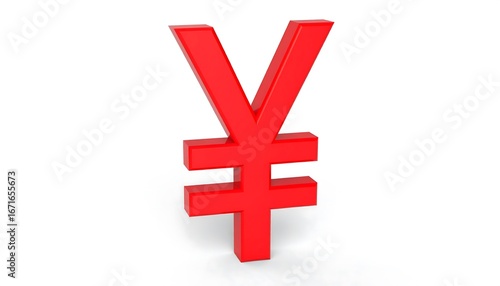 © Yaqin, Obraz premium A three-dimensional, vibrant red yen symbol stands out against a plain white background.