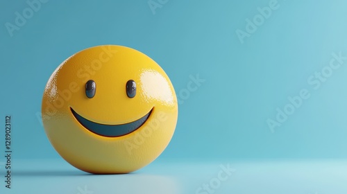 Fototapeta premium A three-dimensional yellow smiley face against a blue backdrop, symbolizing...